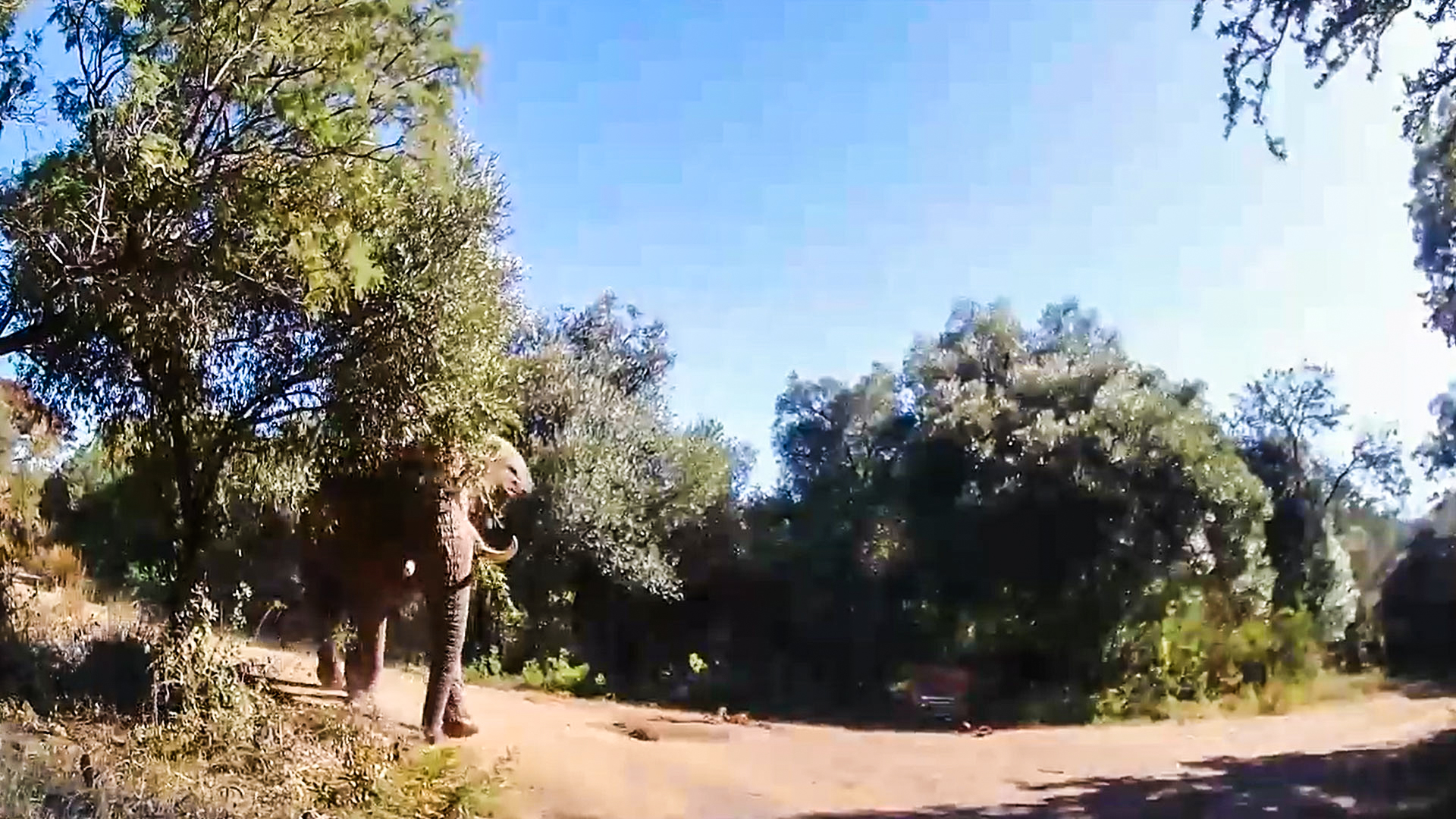 Video footage shows the massive bull approaching the vehicle with clear signs of aggression before using its tusks and trunk to lift and strike the front of the car. The force of the impact was enough to raise the vehicle off the ground, highlighting the sheer power of the animal.