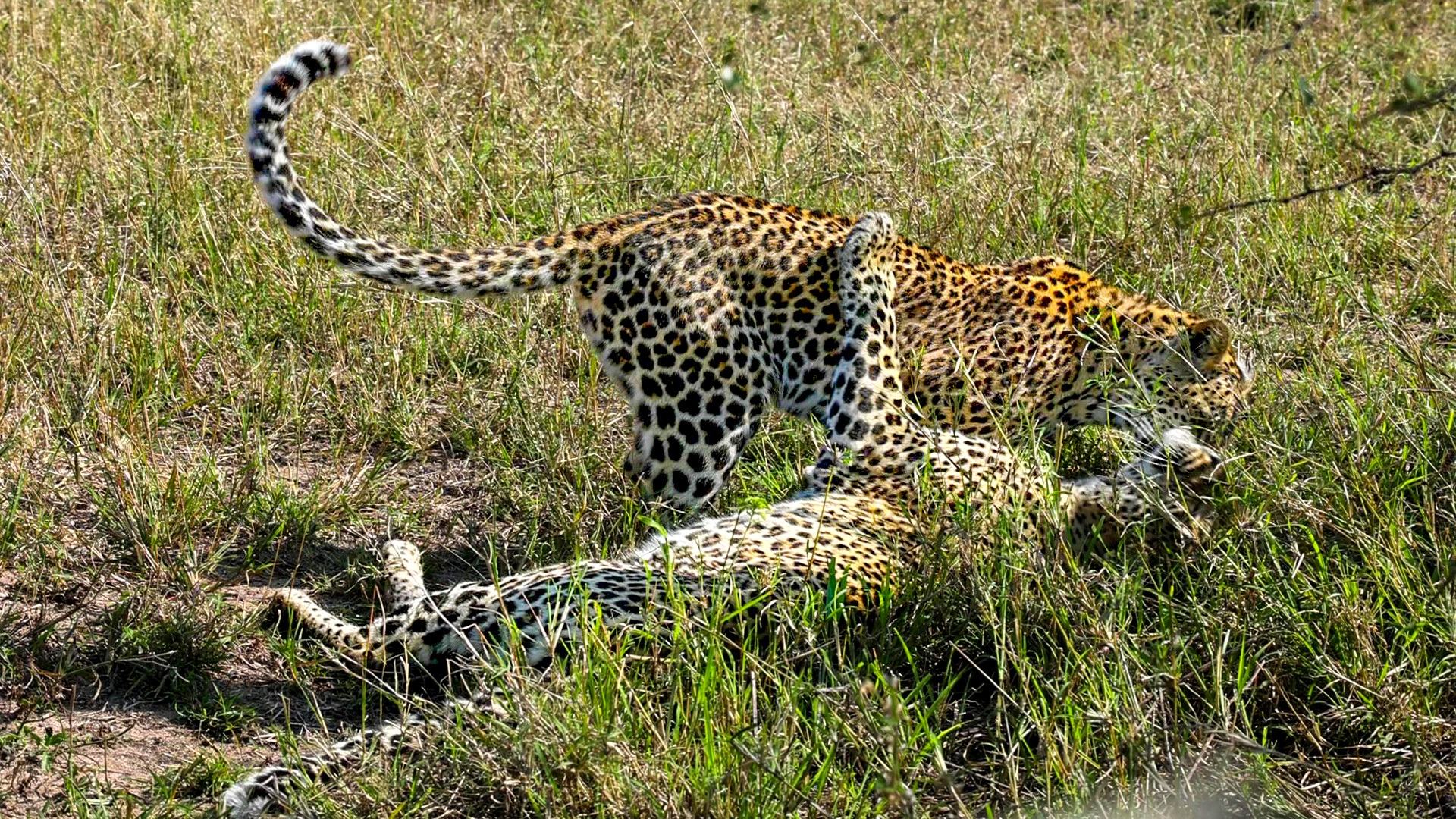 A touching moment in the African bush delighted safari guests when two leopards were seen reuniting — greeting one another with calm familiarity after time apart.