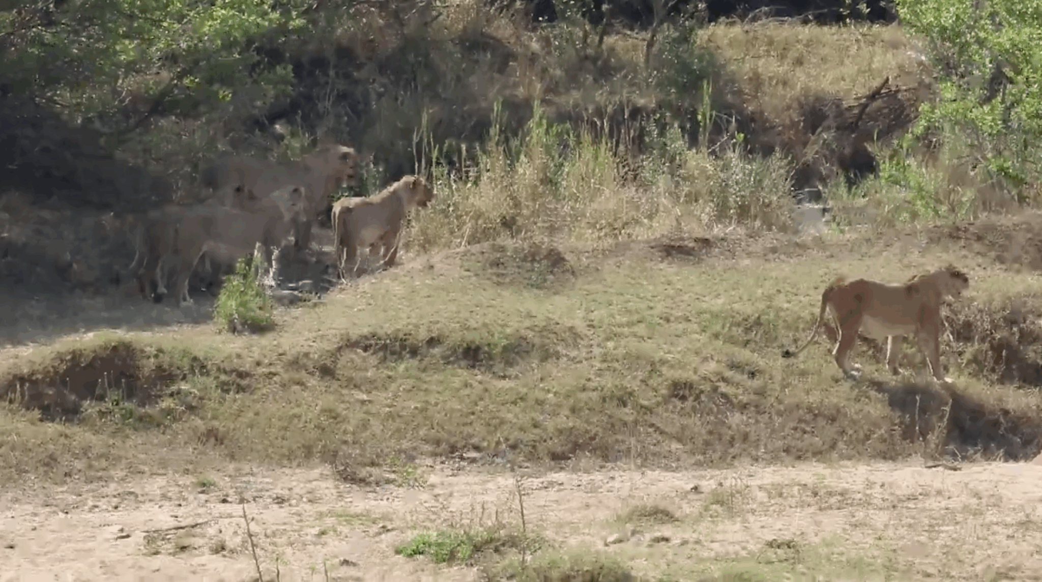 The encounter began with the lions carefully tracking their target. Buffalo are among the most dangerous prey lions can attempt to take down — strong, aggressive, and capable of inflicting serious injuries. Despite the risks, the lions moved with purpose, coordinating their positions as they prepared to strike.